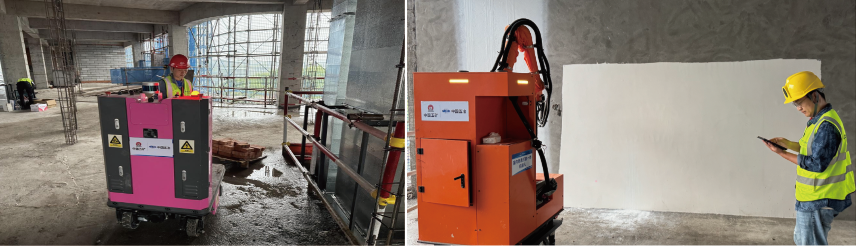 智能施工智能施工本项目在施工过程中广泛应用智能化设备,涵盖智能监测设备、智能作业设备及建筑机器人等多种高科技工具。智能监测设备主要用于项目的安全与质量管控,具体包括AI视频监控系统、起重机械设备安全监控等,实时监测施工现场的各项安全指标,确保施工过程的高效与安全。此外,项目还引入了多种智能作业设备,如智能布料机,提升了施工效率与精度。同时,建筑机器人也在项目中发挥了重要作用,诸如智能扫地机器人、物流搬运机器人、地坪研磨机器人等设备,不仅减少了人工劳动强度,还提高了施工质量和工作效率。这些智能化设备的应用,标志着项目施工向更高效、安全、智能化的方向发展,为现代建筑施工注入了新的动力。