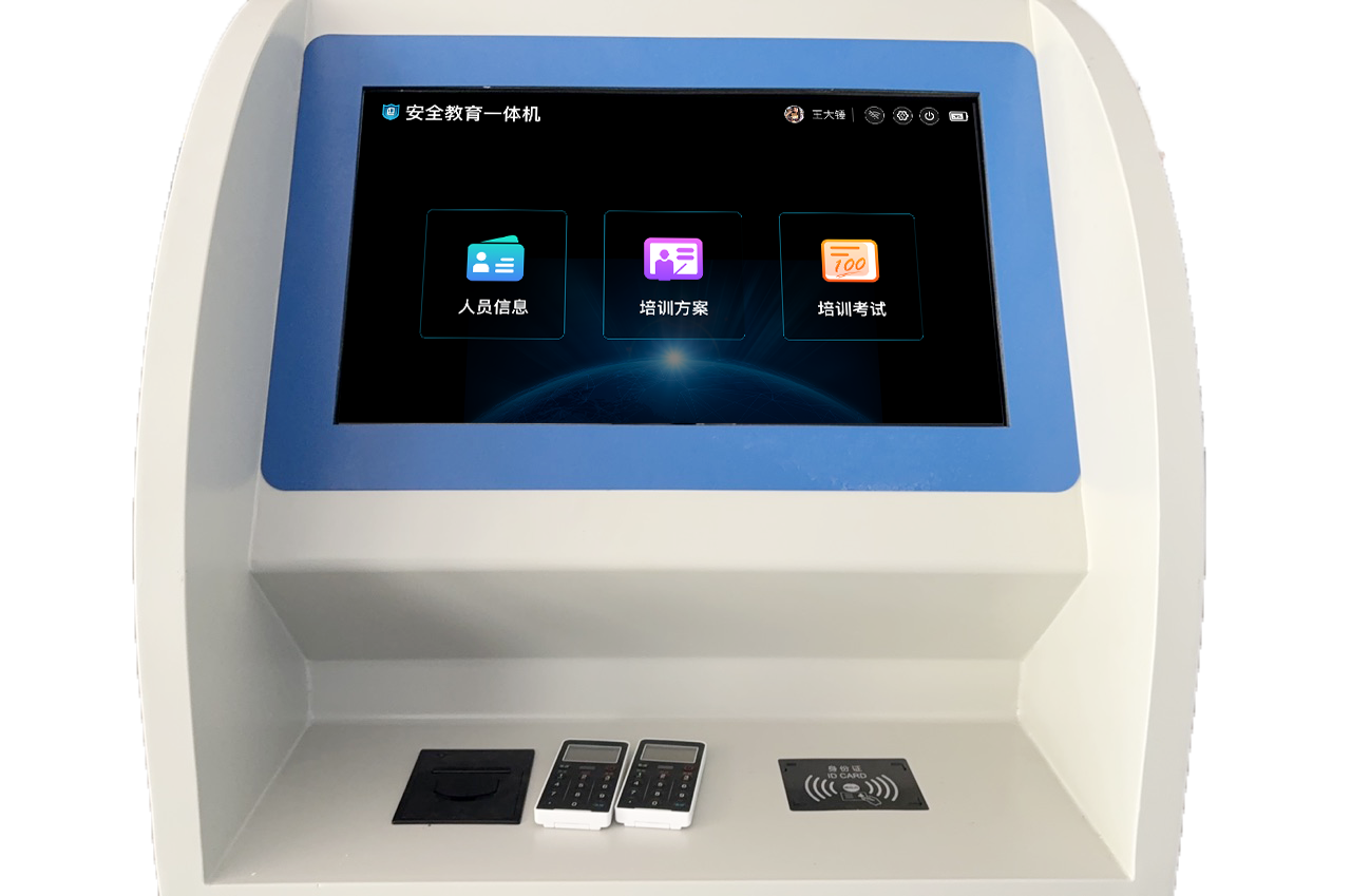安全教育一体机=“15.6″高清屏+刷脸登录+云端课程库”一站式培训盒子。