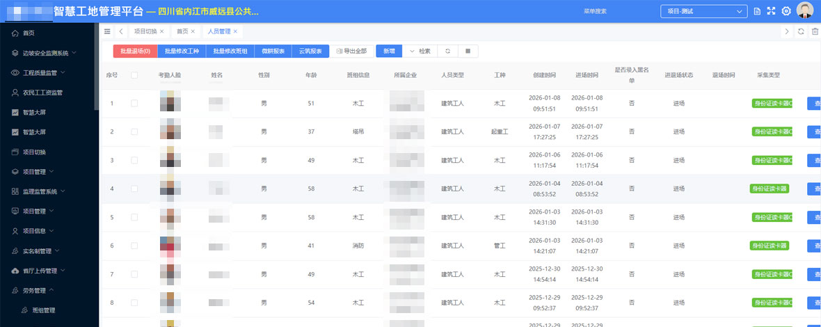 把实名登记、健康体检、安全培训、扫码考试、电子合同、劳保发放、宿舍分配、刷脸门禁等9大环节集成到“一条流水线”,30分钟一次办完。