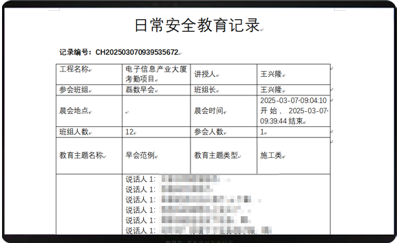 无需专人拍照、写记录,每晨会节省0.5人工,项目月均节约2千元管理成本。