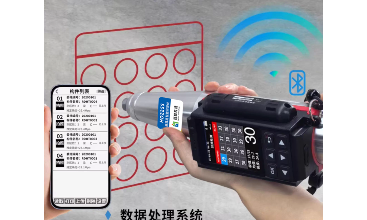 智能混凝土回弹仪是一款“机械回弹+数字传感+云端报告”三位一体的一体式强度快检仪。内置蓝牙/4G模块,现场完成弹击后自动计算强度并秒传智慧工地平台,实现“按一次→数据上云→报告自动生成”的全流程数字化。